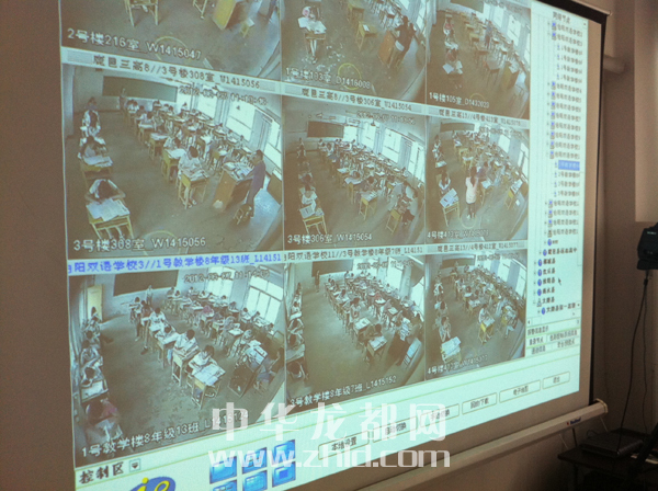 今年高考,我市全部使用視頻標(biāo)準(zhǔn)化考場。在二高視頻監(jiān)考室,9名監(jiān)考員正盯著監(jiān)控屏幕上34個考場的考試情況。記者看到,通過監(jiān)控屏幕,考場內(nèi)考生、監(jiān)考員的一舉一動都能映入眼簾。一名來自西華的監(jiān)考員告訴記者,之前他并不知曉自己會被分配到哪個考場、哪個崗位監(jiān)考,考試當(dāng)天上午在考點抽簽后,才根據(jù)簽位進(jìn)入視頻室監(jiān)考。