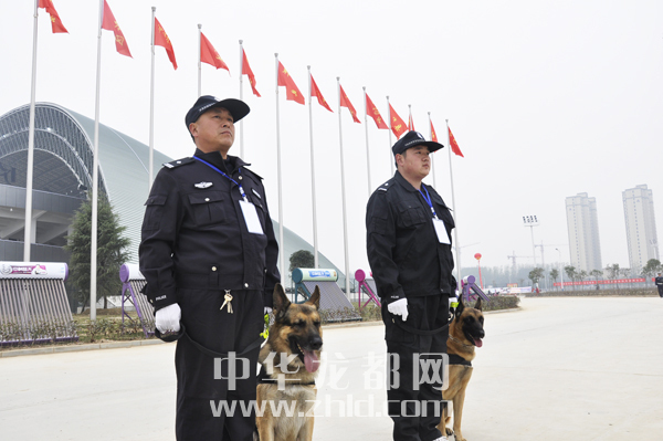 正在巡邏的警犬,承擔(dān)第二次運動會的安保工作。