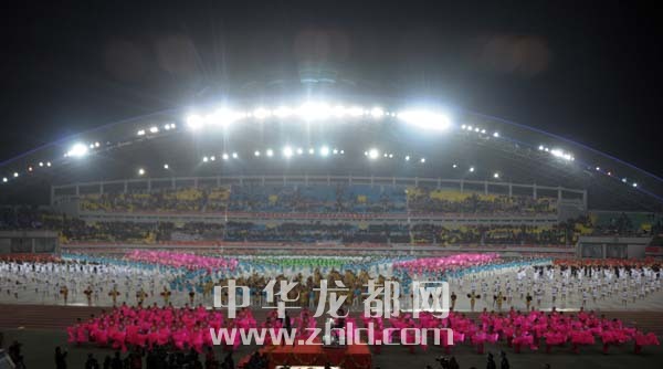 在開幕式大型文體表演《龍騰盛世·周口頌歌》中,5000余名演員為現(xiàn)場觀眾奉獻了一場極具濃郁周口特色的文藝演出,集中展示了我市深厚的歷史積淀、厚重的文化底蘊及現(xiàn)代農(nóng)業(yè)發(fā)展的壯麗篇章和科學(xué)發(fā)展、共建和諧、實現(xiàn)富民強市的蓬勃生機,讓現(xiàn)場觀眾享受了一次豐盛的文化盛宴。