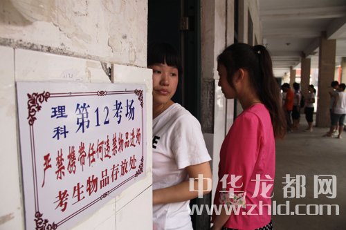考場門前張貼著考場號(hào)及注意事項(xiàng)。