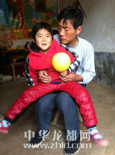 ????11月4日,記者來到何渡口村,剛到小夢夢家門口,就聽到了院里傳來的哭聲。原來,小夢夢患上血液病,可家中沒錢治療,她的爺爺奶奶只有用淚水來緩解心中的痛苦,而天真的小夢夢還在父親何有才的懷里撒嬌(如圖一)。
