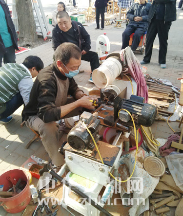 在周口市區(qū)七一路與文明路交叉口南側(cè),記者看到有幾個現(xiàn)場加工制作手串的攤點,攤點旁邊擺放著小型車床、圓珠摩擦器,崖柏、杉木、紅松等木條及一些手串半成品。