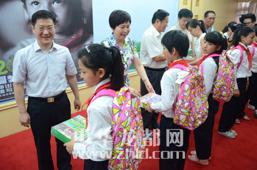 本報(bào)訊 為助力每一位貧困女孩實(shí)現(xiàn)美好的夢想,7月13日,2015年“圓夢女孩志愿行動(dòng)周口行”啟動(dòng)儀式在周口飯店舉行。啟動(dòng)儀式上,有關(guān)領(lǐng)導(dǎo)不僅為志愿者頒發(fā)了證書,為志愿者隊(duì)伍授旗,還為太康縣圓夢女孩代表贈(zèng)送了書包和圖書。