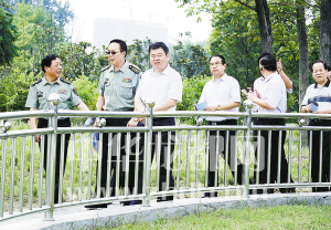 ????市委書記、市人大常委會主任、周口軍分區(qū)黨委第一書記徐光帶領市委、市人大、市政府、市政協(xié)和周口軍分區(qū)領導同志到全國八大國防教育主題公園之一——周口國防教育園參觀指導。(記者 沈湛 攝)