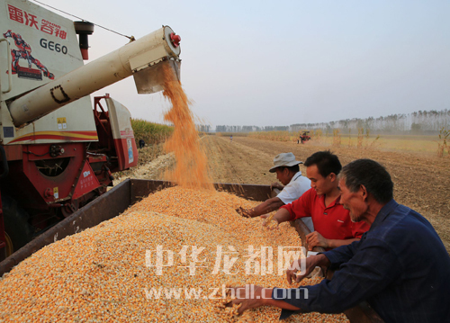 ???? 圖① 9月27日,扶溝縣大李莊鄉(xiāng)馮老村農(nóng)民正在收玉米。該縣各鄉(xiāng)鎮(zhèn)群眾抓住天氣晴好的有利時機(jī),組織協(xié)調(diào)機(jī)械收秋,做到成熟一塊收割一塊,確保顆粒歸倉。黃金峰 攝????