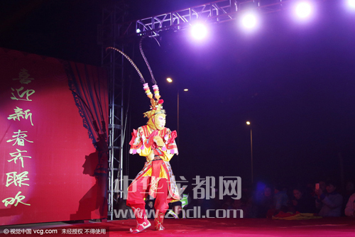 ????還記得小時(shí)候我們搬著小板凳到村頭看電影或聽?wèi)騿幔咳缃癜。r(nóng)民不再看電影聽?wèi)蛄?,而是開始在村頭辦“村晚”啦。2月2日晚上,太康縣老冢鎮(zhèn)孟莊行政村舉辦了一臺(tái)猴年“村晚”。演出現(xiàn)場震天的鼓點(diǎn)和著嗩吶的節(jié)拍,熱鬧非凡。英俊的公子、羞怯的大家閨秀,神采奕奕的大爺大媽,一個(gè)個(gè)生動(dòng)的角色,一段段幽默詼諧的節(jié)目,吸引著附近數(shù)十個(gè)村的兩萬余名村民在此觀看。