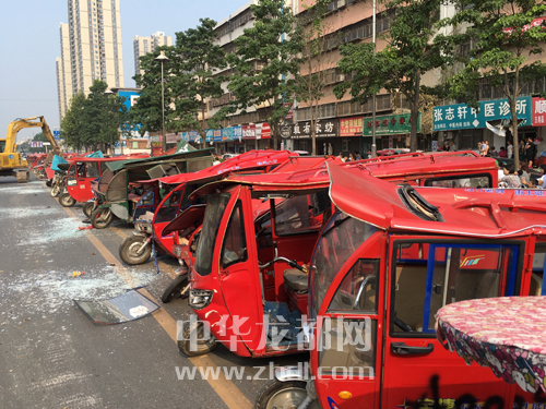 ????9月7日,百余輛三輪車在中心城區(qū)七一路上被統(tǒng)一銷毀。這些被銷毀的三輪車都是市交警部門在中心城區(qū)查扣的非法營運三輪車。晚報記者 朱東一 攝