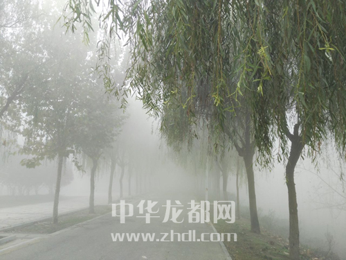 ????11月13日,周口市區(qū)被濃霧籠罩,建筑物和樹木在霧中若隱若現,恍如仙境。王銀行 攝