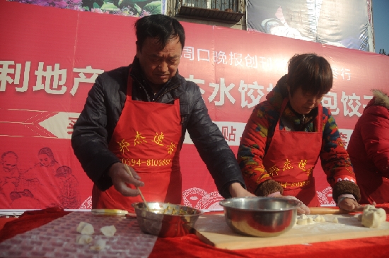 ????12月4日,周口晚報(bào)創(chuàng)刊13周年暖冬行大型公益活動(dòng)——包餃子大賽啟動(dòng)第一場(chǎng)分站賽,69組138名選手激烈角逐后,6組選手獲得分站賽一、二、三等獎(jiǎng)。晚報(bào)記者 朱海龍 攝