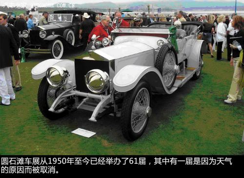 ??? 第二次的圓石灘車展是在1951年5月27日舉辦,當(dāng)時(shí)只有23輛車參展。接下來幾十年中,除了1960年,因?yàn)樘鞖鈵毫拥脑蛉∠囌?;以?963到1965年間長(zhǎng)期大雨磅礴導(dǎo)致了參展草地?fù)p壞不可用,車展地點(diǎn)出現(xiàn)一些變動(dòng)外,圓石灘車展一直舉辦的都非常順利,并且由于其參展車型都是價(jià)值連城的古董老爺車及未來的概念車,所以它還獲得了“全球最豪華的汽車展”稱號(hào)。