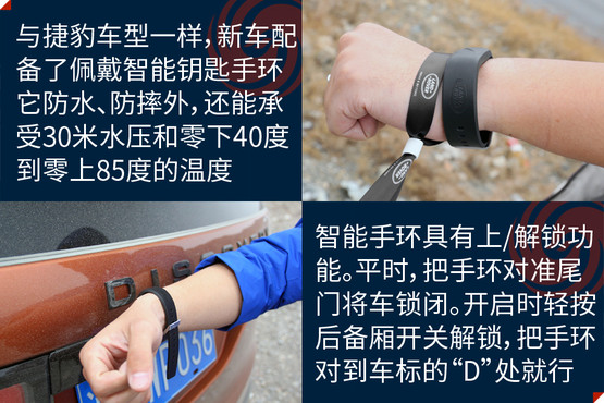 在配置上,新車也做到了盡善盡美,像方向盤加熱、四區(qū)自動(dòng)空調(diào)、全景影像、英國之寶音響系統(tǒng)、后排娛樂系統(tǒng)、雙天窗它都有。智能系統(tǒng)方面,InControl系統(tǒng)除了常見的娛樂、媒體、熱點(diǎn)功能,還可以顯示并調(diào)節(jié)大量的車輛輔助信息,并支持遠(yuǎn)程控制。此外還可選裝智能手環(huán),實(shí)現(xiàn)更方便的隨身鑰匙。