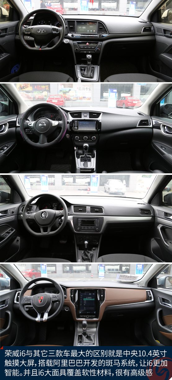 榮威i6內(nèi)飾軟包比例達(dá)到80%,能摸到的地方幾乎都采用了軟性材料,舒適溫馨的車內(nèi)氛圍也是家庭用戶非??粗氐?。榮威i6內(nèi)飾最大亮點(diǎn)在于10.4英寸的中控屏和和7英寸液晶儀表盤,讓科技感和豪華感超越了另外三款合資車型。相比榮威i6來(lái)說(shuō),它們的內(nèi)飾過(guò)于老套了。同樣i6的做工也絲毫沒(méi)有遜色于對(duì)手,在內(nèi)飾有機(jī)物揮發(fā)指標(biāo)上遠(yuǎn)低于國(guó)家車內(nèi)空氣質(zhì)量標(biāo)準(zhǔn)水平。
