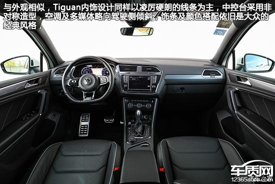 與外觀相似,Tiguan內(nèi)飾設計同樣以凌厲硬朗的線條為主,中控臺采用非對稱造型,空調(diào)及多媒體略向駕駛側傾斜,飾條及顏色搭配依舊是大眾的經(jīng)典風格,雖然大面積覆蓋軟性搪塑材質,但手感稍硬,不過接縫相當緊實,足以展現(xiàn)進口車風范。