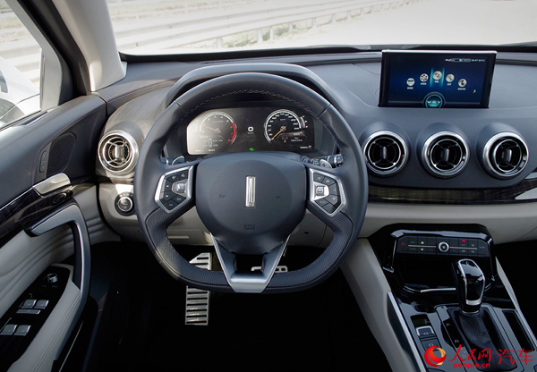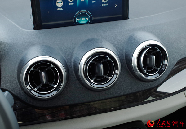坐進(jìn)車(chē)內(nèi),或許能更直觀地感受到長(zhǎng)城為WEY品牌的首款車(chē)型所營(yíng)造的豪華氛圍?;蛟S“豪華”二字并不是最準(zhǔn)確的形容詞,因?yàn)閂V7的內(nèi)飾設(shè)計(jì)更多地傳遞了一種科技感。大傾斜角度的中控臺(tái)上,有著寬大的飾板區(qū)分上下兩層,圓形的空調(diào)出風(fēng)口設(shè)計(jì)巧妙且有型,給你不錯(cuò)的印象。