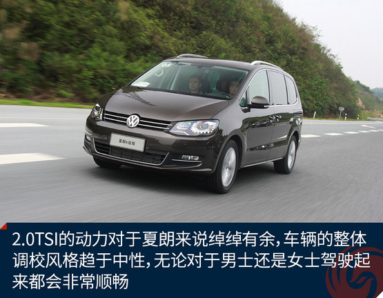 在駕駛方面,大眾汽車(chē)一貫的沉穩(wěn)風(fēng)格在夏朗上得到進(jìn)一步升華,畢竟這是一款注重家用的MPV車(chē)型。2.0TSI的動(dòng)力對(duì)于夏朗來(lái)說(shuō)綽綽有余,車(chē)輛的整體調(diào)校風(fēng)格趨于中性,這也是大眾品牌所崇尚的風(fēng)格,所以夏朗這款車(chē)無(wú)論對(duì)于男士還是女士駕駛起來(lái)都會(huì)非常順暢,對(duì)于一個(gè)家庭來(lái)說(shuō)不同的駕駛者都會(huì)對(duì)夏朗的駕駛感受表示滿(mǎn)意的。