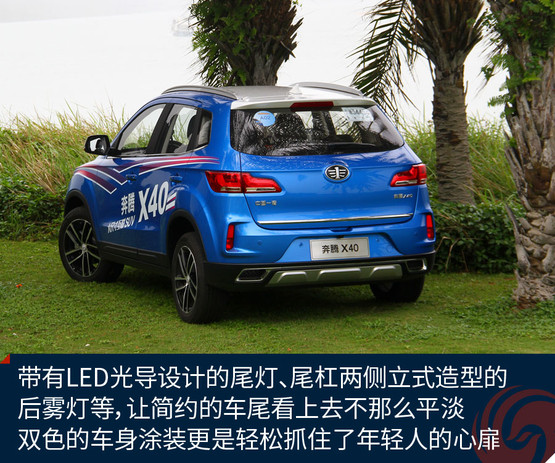 奔騰X40定位于一款小型SUV,雖然家族式的六邊形格柵線條依然有點(diǎn)生硬,但頗具馬自達(dá)神韻的大燈、帶有京劇臉譜線條的前臉、時尚前衛(wèi)的雙色車身等,都讓它向目前大家更看重的顏值路線更近一步。能在第一眼抓住年輕人的心,這款車就成功了一半。