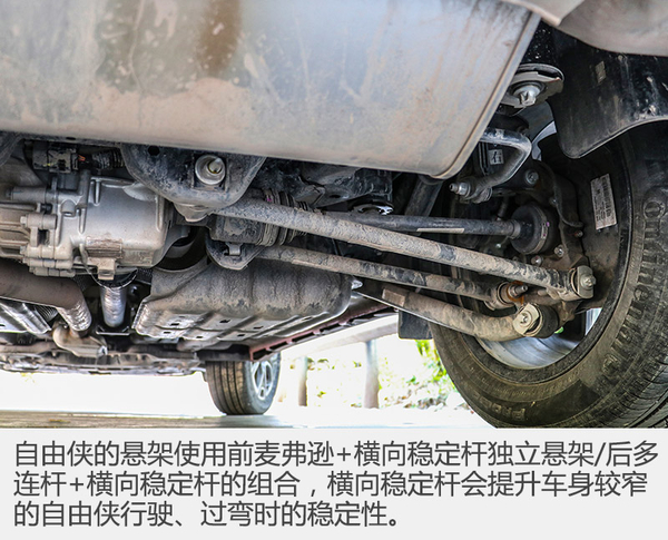 讓我找一些詞來形容自由俠的底盤表現(xiàn)的話,我只能用滿意、很滿意和非常滿意來表述;在河道里的大石頭和側(cè)傾路就表現(xiàn)出了很好的過濾和穩(wěn)定,然而在公路上的表現(xiàn)同樣優(yōu)秀,優(yōu)秀的側(cè)傾抑制讓我顛覆了一直以來對(duì)Jeep的印象。想必這一切和防傾桿、橫向穩(wěn)定桿和來自荷蘭KONI的FSD可變阻尼減震器有關(guān)。