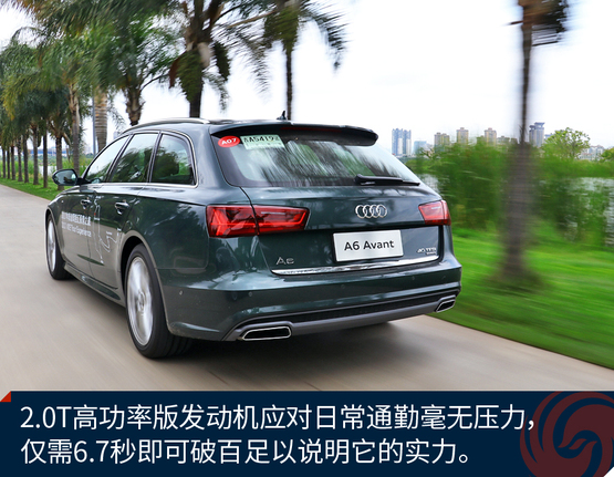 ????????這套動力總成在絕大多數(shù)情況下都設定風格都是注重節(jié)油,輕踩油門時動力輸出提升比較遲緩,但再深踩油門挑逗渦輪全力以赴就有點“過火”了。總的來說A6 Avant的動力釋放風格是先禮后兵,在市區(qū)行駛控制動力的平和輸出需要一定的經(jīng)驗和技巧,但還是要對雙離合變速器給與肯定:它的換擋既快又穩(wěn),低速時的闖動也控制的難以感知。如果開車的風格比較活潑激進,選擇運動模式會提供讓你滿意的動力響應。