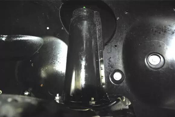 ????衛(wèi)士的底盤前視,衛(wèi)士作為一款硬派越野車,最小離地間隙達到了323mm(從圖上可以看到這一最小間隙位于前軸的差速器鼓包處),320mm的最小離地間隙意味著什么?一個人平躺在地面上,衛(wèi)士能從上方駛過而人不會有任何損傷。相比于一般SUV的200mm左右的最小離地間隙,衛(wèi)士顯然不在一個層級上。