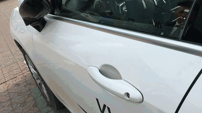 這個無鑰匙進(jìn)入,非常有意思,手放在門把手里,不用任何操作,車輛就解鎖了,車輛上鎖只需要手指一劃門把手上的凸起處,來看動圖。