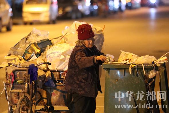 如果天氣允許,每天傍晚6點半到深夜11點之間,在淮陽縣西關(guān)弦歌西路和新民南路交叉口附近,你都會見到一位身材矮小、騎著或推著一輛破舊三輪、上年紀、一只眼睛失明的老奶奶,在一個又一個垃圾桶前停下,翻揀廢舊紙箱、塑料瓶。把揀拾的廢品放上三輪車,老人還不忘用隨身帶的鐵锨清理好凌亂的垃圾,再到下一個垃圾桶邊繼續(xù)翻揀。