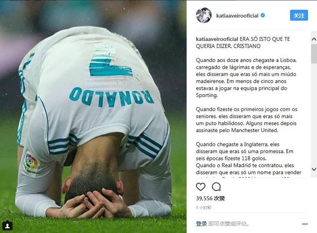 本賽季的C羅,狀態(tài)跌至谷底,門前缺乏進(jìn)球,越來越多的球迷開始批評(píng)C羅。C羅的姐姐卡蒂婭-阿韋羅在社交媒體上力挺C羅,她寫了一大段話鼓勵(lì)C羅。