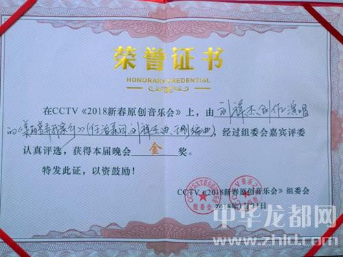 中華龍都網(wǎng)訊(周口報(bào)業(yè)全媒體記者馬治衛(wèi))1月21日,CCTV第六屆新春原創(chuàng)音樂(lè)盛典暨頒獎(jiǎng)盛典在北京舉行,太康籍詞作家任治森原創(chuàng)歌曲《美麗普弄我家鄉(xiāng)》榮獲2018新春原創(chuàng)歌曲金獎(jiǎng)。