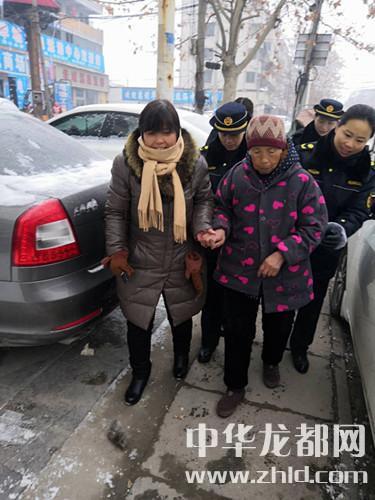 當(dāng)日早上8點(diǎn)15分許,正在西華縣明德小學(xué)附近執(zhí)勤的縣城管局女子中隊(duì)的一名隊(duì)員突然發(fā)現(xiàn)一位老婆婆時(shí)而左右張望,時(shí)而喃喃自語(yǔ)。這名隊(duì)員立即上前詢問(wèn)該名老人是否遇到困難時(shí),還未等隊(duì)員說(shuō)話,老人就張口說(shuō):“閨女,我不知道回家的路了?!苯?jīng)過(guò)耐心溝通得知,老人當(dāng)日從老家來(lái)縣城找閨女,但是忘了閨女家怎么走。老人只記得兒子的名字,其它一無(wú)所知。女子中隊(duì)的隊(duì)員們一邊安撫老人的情緒,一邊把老人的情況、照片與其兒子的姓名等信息發(fā)到西華縣城市管理工作群,并用對(duì)講機(jī)通知讓大家共同關(guān)注幫忙尋求線索。城市管理工作群的群?jiǎn)T們及時(shí)把信息轉(zhuǎn)發(fā)到朋友圈,很快工作群里有了回復(fù)信息,有人認(rèn)識(shí)老人的兒子,并提供了聯(lián)絡(luò)方式等信息。通過(guò)電話溝通,證實(shí)了高某正是老人的兒子。因?yàn)樘鞖夂洌胫先诵袆?dòng)不便而且容易著涼,為盡快把老人送到家人身邊,女子中隊(duì)的隊(duì)員們隨即把老人扶上車送其回家。