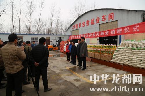 中華龍都網訊 (周口報業(yè)全媒體記者張勁松 通訊員 蘇千) 新年送溫暖,扶貧獻愛心。1月28日下午,東新區(qū)許灣鄉(xiāng)創(chuàng)興裝飾公司暨扶貧車間慰問貧困戶捐贈儀式在許灣鄉(xiāng)精準扶貧就業(yè)車間隆重舉行。當日,該公司為許灣鄉(xiāng)貧困戶捐贈了價值6萬余元的米、面、油等扶貧物資。許灣鄉(xiāng)黨委書記李培華,東新區(qū)紀檢監(jiān)察室副主任、許灣鄉(xiāng)于莊行政村第一書記高賓及企業(yè)相關負責人出席儀式。