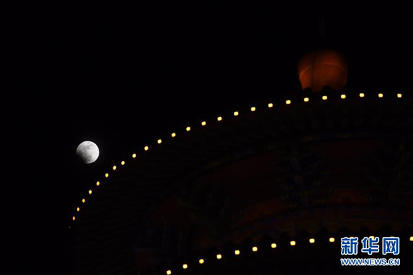 這是1月31日在北京宣武門地區(qū)拍攝的月亮升起時(shí)的場(chǎng)景。當(dāng)日是丁酉雞年最后一個(gè)滿月夜,天空中上演月全食大戲。我國(guó)大部分地區(qū)都能欣賞到一輪“紅月亮”高懸夜空的迷人景象。新華社記者 邢廣利 攝