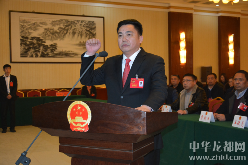 新當(dāng)選的太康縣監(jiān)察委員會(huì)主任何明照在大會(huì)現(xiàn)場(chǎng)進(jìn)行憲法宣誓