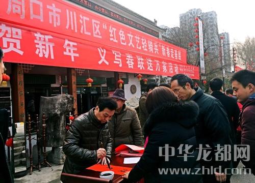 中華龍都網(wǎng)訊 (周口報(bào)業(yè)全媒體記者 彭慧 文/圖)春節(jié)即將來臨,喜慶的氛圍逐漸濃厚,近來中心城區(qū)相繼舉辦文化活動,為廣大市民義寫春聯(lián),送去新春的祝福。2月9日上午,川匯區(qū)、川匯區(qū)書法家協(xié)會聯(lián)合華威民俗文化博物苑,積極響應(yīng)“紅色文藝輕騎兵”新春走基層號召,一副副吉祥喜慶寓意的春聯(lián),免費(fèi)贈送給千家萬戶。據(jù)悉,這一公益活動已持續(xù)14年之久。