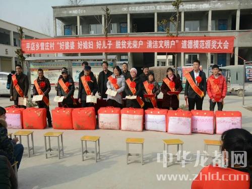 中華龍都網(wǎng)訊(周口報業(yè)全媒體記者 付永奇 趙永昌 文/圖))2月10日下午,商水縣平店鄉(xiāng)曾莊小學操場內(nèi),人頭攢動、熱鬧非凡,村里評選出來的10位好婆婆、好媳婦、好兒子、清潔文明戶、脫貧光榮戶等“五好”群眾代表身披綬帶、胸戴紅花,臉上都洋溢著幸福的喜悅;一些民間文藝團體分別助興表演了挑花籃、扇子舞、廣場舞等喜慶的節(jié)目,把現(xiàn)場氣氛烘托得異常隆重熱烈?!盀楹霌P社會公德、家庭美德,提升群眾素質(zhì)和文明程度,春節(jié)來臨之際我們召開‘五好’表彰大會,下面有請鄉(xiāng)黨委副書記、鄉(xiāng)長徐汝濤給大家講話......”隨著主持人、鄉(xiāng)紀委書記劉新光的開場白,臺下響起了一陣熱烈的掌聲?!伴_展好婆婆、好媳婦、好兒子、清潔文明戶、脫貧光榮戶等模范家庭人物評選是我鄉(xiāng)精神文明建設工作的一項重大舉措,也是脫貧攻堅、農(nóng)村人居環(huán)境整治、文明鄉(xiāng)風提升的部分內(nèi)容,更是弘揚孝親敬老、勤勞致富、講究衛(wèi)生等優(yōu)良傳統(tǒng)的需要。全鄉(xiāng)各村都要通過召開評選表彰大會,引導廣大人民群眾學先進、爭先進,為文明和諧平店建設做出更大的貢獻......”徐汝濤提出殷切的希望。曾莊行政村“兩委”成員、駐村工作隊、第一書記及部分群眾200余人參加了會議。與會領導為此次層層推薦評選出的好婆婆、好媳婦、好兒子、清潔文明戶、脫貧光榮戶頒發(fā)了榮譽證書和獎品。據(jù)村支部書記曾紀靈介紹,這些“五好”模范都有感人的故事,或是講究衛(wèi)生、勤儉持家,孝老敬親、患難與共;或是鄰里互助、脫貧致富;他們用實際行動證明了自己對文明風尚的價值追求,在生活中書寫了一個個接地氣的好故事,為廣大家庭樹立了好榜樣。受表彰的好婆婆胡秀英說:“把媳婦當閨女,啥時候也不會吵架生氣......”清潔文明戶朱國申說:“農(nóng)村環(huán)境臟亂差,咱要帶頭改變它......”脫貧光榮戶劉前進說:“國家扶貧政策好,不如早點摘掉貧困帽!”
