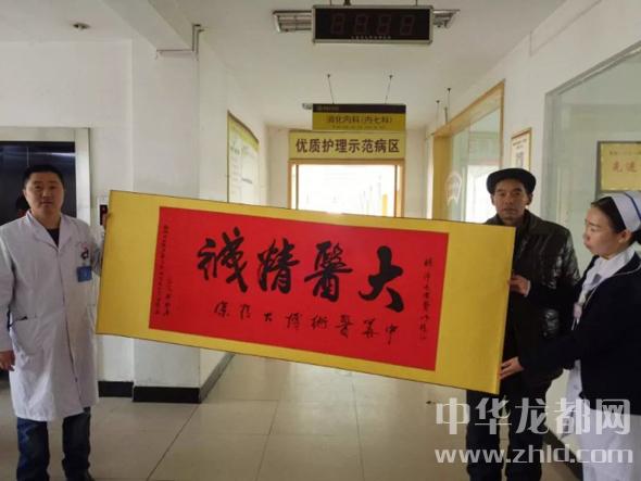 中華龍都網(wǎng)訊(周口報(bào)業(yè)全媒體記者 徐松 通訊員 張洋)2月26日,和往常一樣忙碌的鄲城縣中醫(yī)院消化內(nèi)科(內(nèi)七科)收到了一份別具一格的感謝——前不久從消化內(nèi)科出院的患者羅有志將自己精心準(zhǔn)備的書法作品送到了消化內(nèi)科主任許延杰和護(hù)士長(zhǎng)劉賽手中,感謝住院期間科室醫(yī)護(hù)人員對(duì)自己的精心治療和熱心服務(wù)。