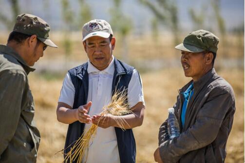 2017年9月是新疆哈密的小麥?zhǔn)崭罴?,全國人大代表、治土人黨永富在田間考察化肥減量、農(nóng)業(yè)提質(zhì)的實(shí)際效果。