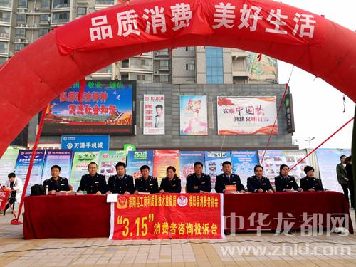 中華龍都網(wǎng)訊(周口報(bào)業(yè)全媒體記者 杜欣 文/圖)3月15日上午,淮陽縣消費(fèi)者協(xié)會(huì)組織當(dāng)?shù)叵嚓P(guān)職能部門,在潤(rùn)德廣場(chǎng)舉辦2018年3·15國(guó)際消費(fèi)者權(quán)益日紀(jì)念大會(huì)暨大型宣傳咨詢服務(wù)活動(dòng)。淮陽縣人大副主任、縣消費(fèi)者協(xié)會(huì)會(huì)長(zhǎng)霍偉,淮陽縣人民政府副縣長(zhǎng)薛燕等參加活動(dòng)。活動(dòng)現(xiàn)場(chǎng),職能部門專門設(shè)立了執(zhí)法“別動(dòng)隊(duì)”,在接受消費(fèi)者現(xiàn)場(chǎng)投訴后,隨時(shí)出動(dòng)處理。