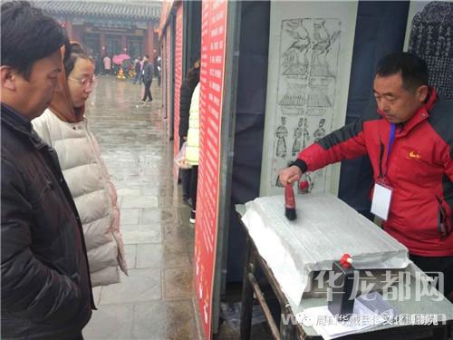 中華龍都網(wǎng)訊(周口報(bào)業(yè)全媒體記者 徐啟峰)3月25日,淮陽廟會(huì)開展一周有余,與廟會(huì)同步進(jìn)行的非物質(zhì)文化遺產(chǎn)展每天都吸引數(shù)萬游人駐足觀看,其中由周口華威民俗文化博物苑提供的傳統(tǒng)農(nóng)耕文化展、傳統(tǒng)拓片制作技藝更是勾起許多游人的興趣。