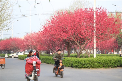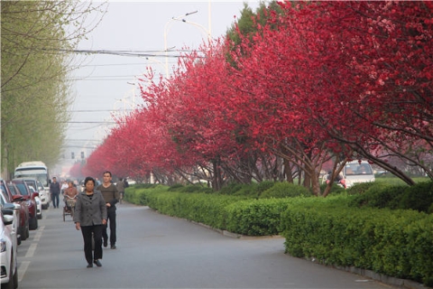“不必費(fèi)勁周折跑到鄉(xiāng)間土路看桃花,我們這里的桃樹是專門的景觀桃。相比普通桃樹,景觀桃花瓣更多、更嬌艷,而且花期也相對(duì)較長?!睂?duì)桃樹頗有研究的賈海新說,只是建設(shè)大道西段處于周口城區(qū)西北角,靠近郊區(qū),這里盛開的桃花鮮有人知道而已。