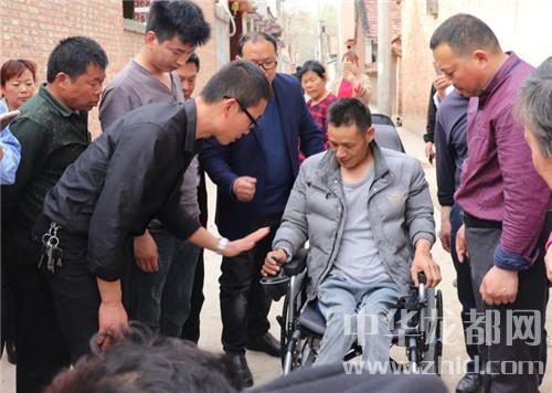 中華龍都網(wǎng)訊(周口報(bào)業(yè)全媒體記者 李瑞才 通訊員劉傳保 胡洪濤圖文)前不久,本網(wǎng)曾報(bào)道了鹿邑太清宮鎮(zhèn)男子王成濤因從10樓墜落致癱瘓,自愿捐出器官救別人的事跡,看到報(bào)道后,許多網(wǎng)友紛紛稱贊王成濤。為了方便王成濤活動,近日,在鹿邑縣委宣傳部、縣文明辦的倡導(dǎo)和參與組織下,鹿邑星宇電子商務(wù)有限公司的總經(jīng)理王朝華、郭彥山,副總經(jīng)理孫永建等人來到了太清宮鎮(zhèn)楊橋村,專門為王成濤送來他們在網(wǎng)上訂購的電動輪椅。