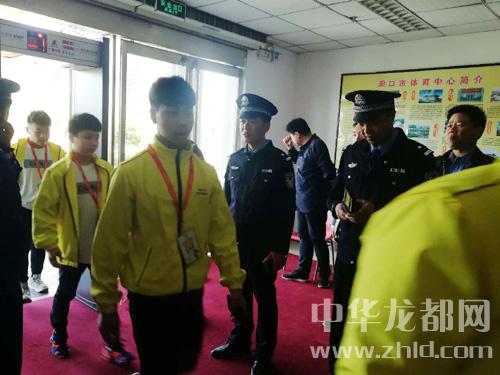 在市體育館的入口處設(shè)有安檢門,門口兩側(cè)各有4名民警檢查進入場館的人員證件,無論是工作人員還是運動員、裁判員都必須憑組委會發(fā)放的證件方能進入。另有2名民警手持金屬探測儀,在進入的人員身上探測可疑金屬,以防止有人誤帶管制刀具等違禁品進入場館內(nèi)。進入當(dāng)日舉行舉重比賽的場館后,記者看到有身穿警服的民警在現(xiàn)場不時走動,維持賽場秩序。