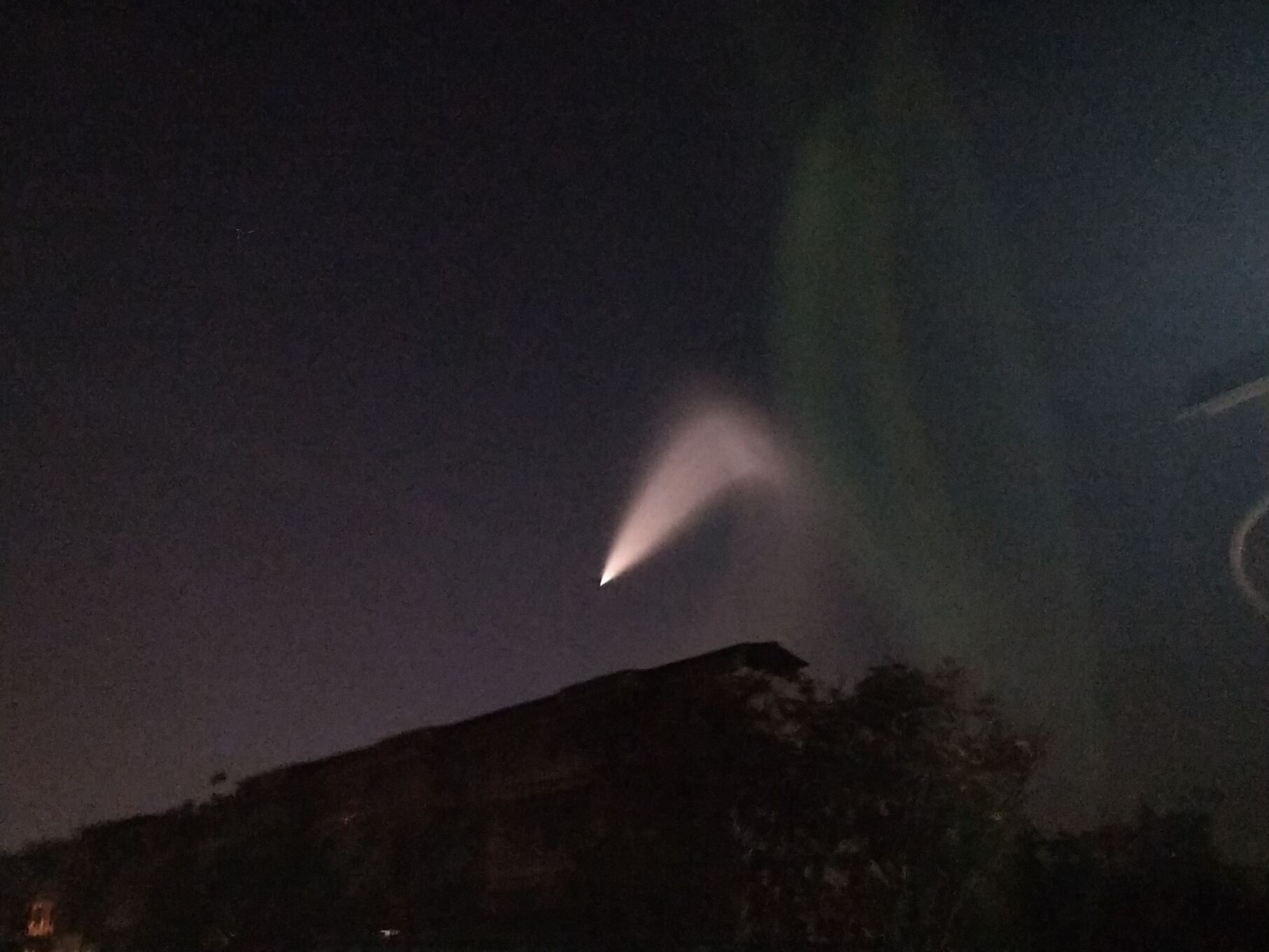 對于這個(gè)場景,正在周口市西華縣出差的河南省文聯(lián)工作人員王建坡也看到了。他給大河報(bào)·大河客戶端記者發(fā)來的圖片顯示,天空西北方向有一道扇形亮光,好像誰家的手電筒被扔到了天上。
