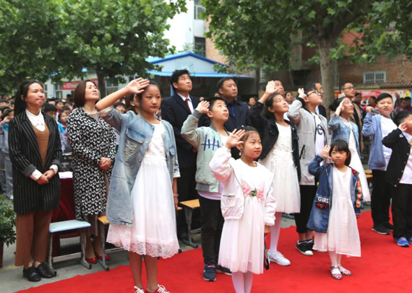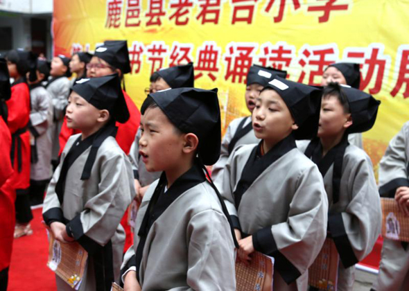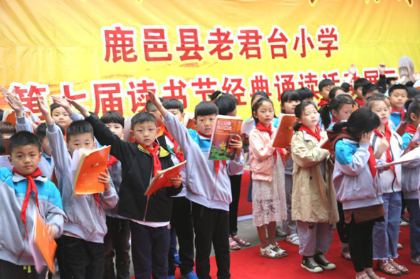 中華龍都網(wǎng)訊(周口報(bào)業(yè)全媒體記者 李瑞才 通訊員 孫廣合 胡洪濤 文/圖)5月21日,鹿邑縣老君臺(tái)小學(xué)舉辦“圣賢儒雅 經(jīng)典誦讀”為主題的第七屆讀書(shū)節(jié)誦讀展演活動(dòng),全校1000多名師生及家長(zhǎng)參加誦讀展演活動(dòng)。