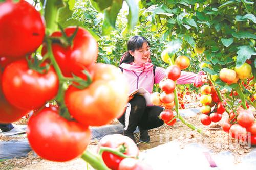 依托河南農(nóng)業(yè)大學(xué)專(zhuān)家團(tuán)隊(duì),扶溝縣蔬菜研究院研發(fā)出400多個(gè)番茄新品種,通過(guò)集中展示讓種植戶(hù)優(yōu)中選優(yōu),并實(shí)施對(duì)貧困戶(hù)購(gòu)買(mǎi)種苗優(yōu)惠50%、特困戶(hù)免費(fèi)供應(yīng)的優(yōu)惠政策,帶動(dòng)206戶(hù)貧困戶(hù)實(shí)現(xiàn)脫貧。圖為工作人員在記錄番茄新品種的試驗(yàn)數(shù)據(jù)。谷志方 攝