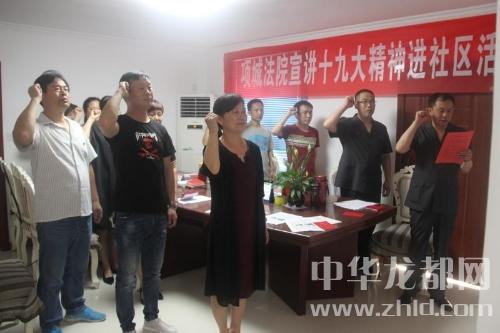 中華龍都網(wǎng)訊 (周口報業(yè)全媒體記者 牛勇威 通訊員 李康 文/圖 )為深入學(xué)習(xí)宣傳貫徹黨的十九大精神,讓十九大精神更好地惠及廣大人民群眾,6月11日下午,項城法院政治處、機關(guān)黨委組織干警到項城市水寨辦事處廣場社區(qū),組織開展“學(xué)習(xí)貫徹十九大,文明單位社區(qū)行”宣講活動。項城市水寨辦事處廣場社區(qū)班子成員及來自社區(qū)的10余名黨員和群眾代表參加了此次活動。