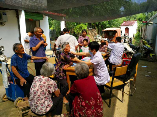 8時40分許,醫(yī)護人員在文莊社區(qū)衛(wèi)生室的醫(yī)務人員的協(xié)助下搭起了臨時義診臺,為村民測血糖、量血壓,并針對測量結(jié)果給出用藥指導,為村民提供健康咨詢服務,現(xiàn)場解答健康問題,并根據(jù)部分村民身體狀況提出合理的防治建議。