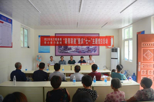 中華龍都網訊(周口報業(yè)全媒體記者 馬治衛(wèi) 通訊員 蘇童)為喜慶中國共產黨建黨97周年,夯實貧困村基層組織基礎,促進脫貧攻堅工作深入開展,按照中共周口市委組織部和周口市直工委要求,6月26日上午,周口市地稅局組織相關科室負責人走進幫扶村太康縣王集鄉(xiāng)李小村行政村開展“黨建聯(lián)幫聯(lián)建暨慶七一主題黨日”活動。這是該局在幫扶村“兩委”成功換屆之后第一次舉辦主題黨日活動,市、縣、鄉(xiāng)各級領導及駐村工作隊和幫扶村30余名黨員代表參加了此次活動。
