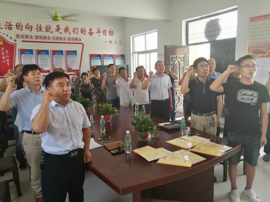 閆振清帶領全體黨員重溫入黨誓詞并與大家一起給張寨村黨支部捐款共計3000余元。