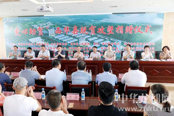 中華龍都網(wǎng)訊(周口報業(yè)全媒體記者 張猛 通訊員 常軍偉)7月14日上午,西華縣“愛心助貧”脫貧攻堅捐贈儀式在經(jīng)開區(qū)9樓會議室舉行??h委書記林鴻嘉,縣委副書記、政法委書記程維崢,縣政協(xié)主席郭峰,縣委常委、宣傳部長楊鳳臣,副縣長毛茹,經(jīng)開區(qū)主任宋廣良以及省委宣傳部原副部長王嶺群,省政協(xié)辦公廳原巡視員王漢英等出席捐贈儀式。