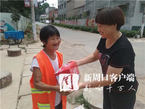 上午10時許,欣中基清潔公司經(jīng)理張志宏來到邵寨行政村??吹铰访娓筛蓛魞簦芨吲d。除了例行巡視,張志宏此行還有一項任務(wù):向每位保潔員發(fā)放一件飲料?!疤鞖獬掷m(xù)高溫,保潔員們露天辛勤勞動,給村民們創(chuàng)造了良好的生活環(huán)境。因此,公司決定開展慰問活動。”接過飲料,邵天錄等6名保潔員滿臉笑容地連聲道謝。
