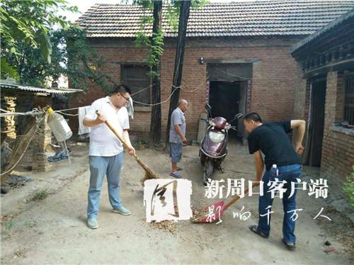 如果環(huán)境衛(wèi)生保持不好,村民的院落就成了滋生蚊蟲的“溫床”。24日早上,大家再一次來到張龐村,宣傳扶貧攻堅、“六村共建”等政策,動手幫群眾打掃院落衛(wèi)生,趁天好幫村民曬糧食。副部長宋斌在走訪時聽說貧困戶劉金才近日肺病復發(fā),呼吸困難,“心里上不來氣兒”,趕緊撥打“120”,聯(lián)系鎮(zhèn)衛(wèi)生院醫(yī)生接診,并和駐村第一書記霍輝、駐村隊員李富軍、幫扶隊員張志華、郭威自掏腰包,湊了500塊錢交到劉金才老伴手里,解了燃眉之急。
